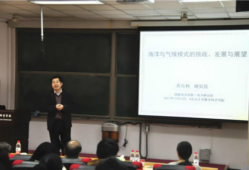2017年11月15日下午,国家海洋局一所党委书记、副所长乔方利研究员应北京大学数学科学学院、北京大学海洋研究院的邀请,在理科一号楼为我校师生做了一场题为“海洋与气候模式的挑战、发展与展望”的精彩报告。中国科学院院士、北京大学数学科学学院张平文教授主持讲座。