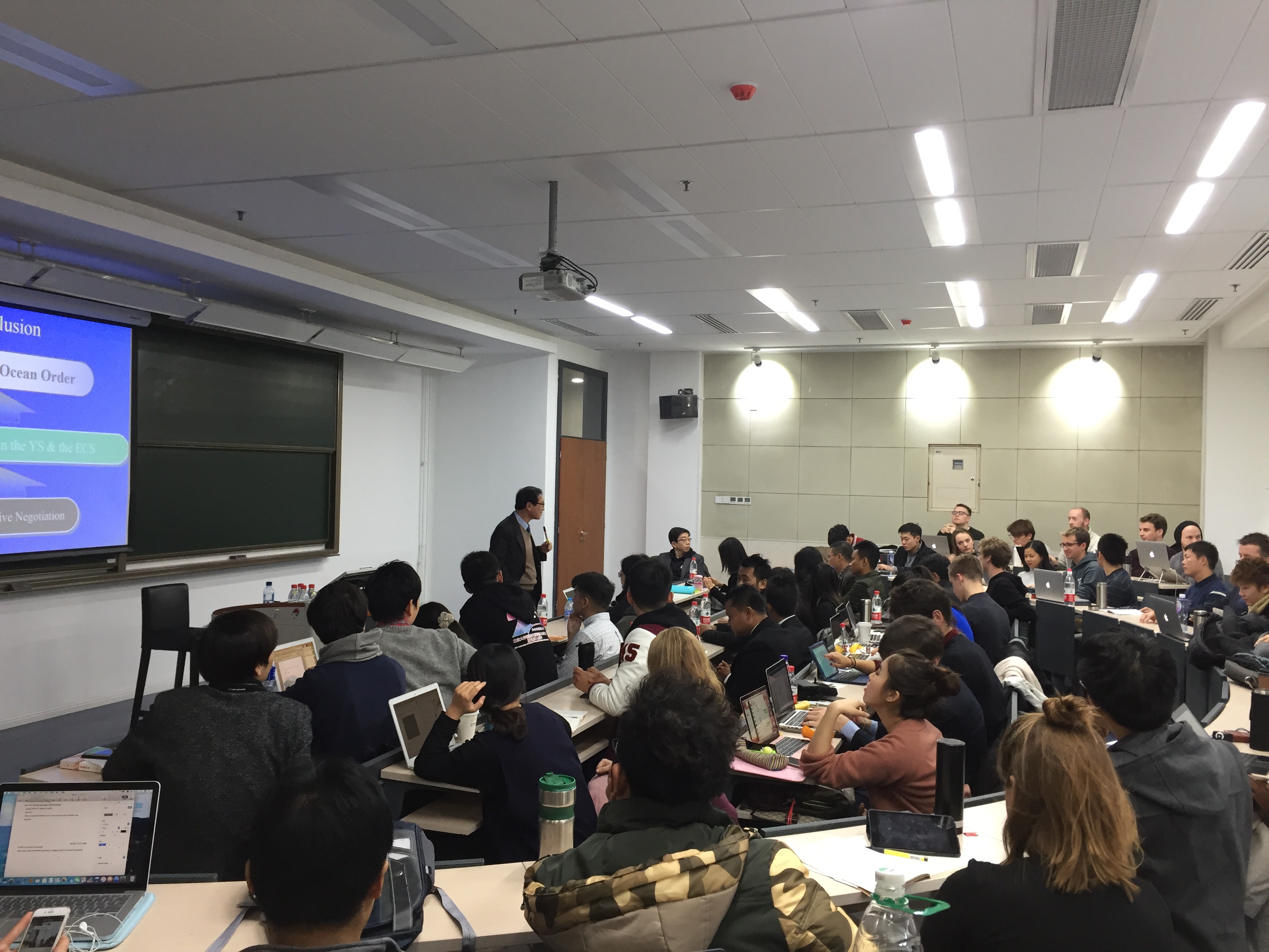 2016年11月7日下午,本学期第三场北京大学“走向深海”系列讲座于北京大学国际关系学院C109教室举行。本场讲座邀请了韩国仁荷大学金显洙教授作为主讲人,与北大师生共同探讨东亚国家海洋事务、国际海洋法、南海争端等当前国际社会的热点问题。