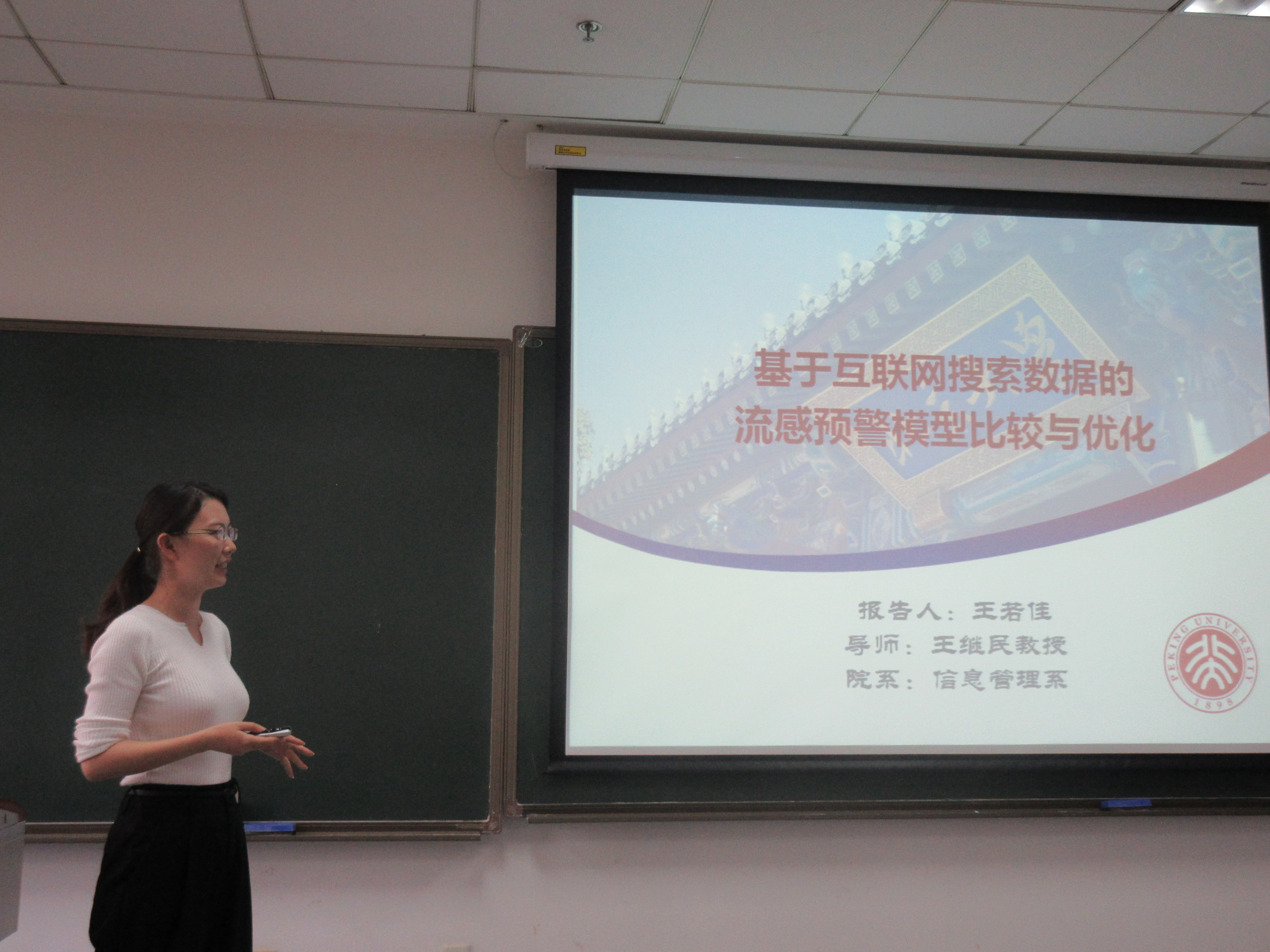 王继民教授指导的博士生王若佳做《基于互联网搜索数据的流感预警模型比较与优化》分享