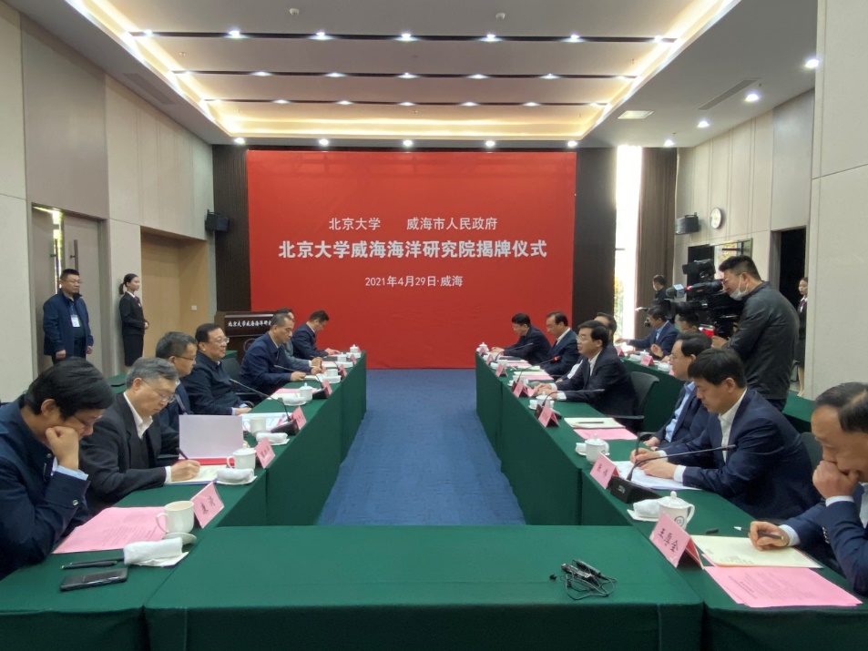 2021年4月28日至29日,北京大学校长郝平率团赴山东,出席北京大学威海海洋研究院揭牌仪式。党委常委、常务副校长、中科院院士龚旗煌,党委常委、副校长、中科院院士张平文,威海市市委书记张海波、市长闫剑波等出席揭牌仪式。