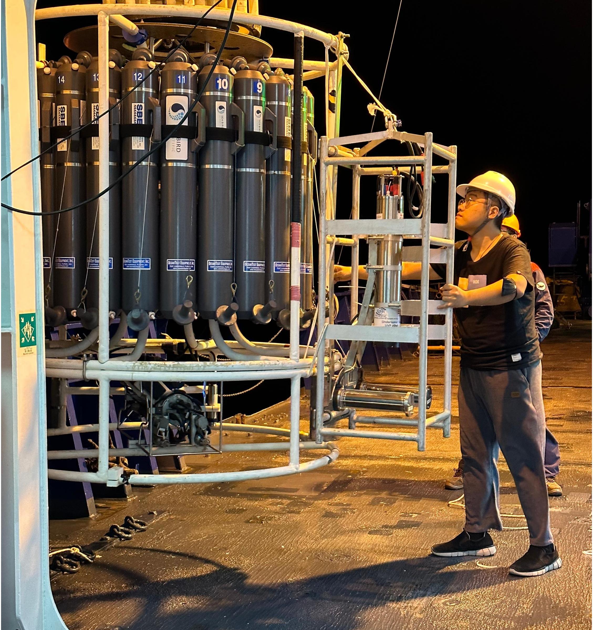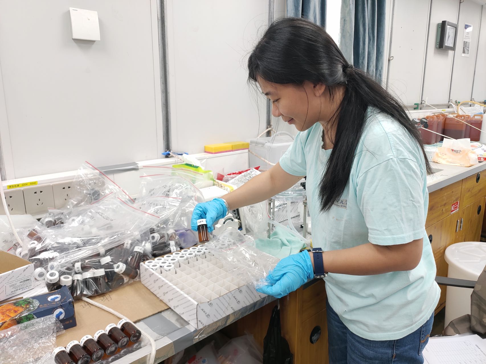 海洋科考的特点之一是样品的珍稀性。科考船的续航上限决定了船只无法在同一站位大量取水。再加上南海受冬季风影响的海况较为恶劣,常常需要躲避风浪,“船在前面跑,巨浪在后面追”的情况时有发生,使得采水量不断缩减。这对卢汐和商纪元是个不小的挑战。他们面对复杂多变的海水作业环境,既要视实际情况及时调整采水方案,又要兼顾科学研究的系统性,还要做好与其他小组的协调工作。