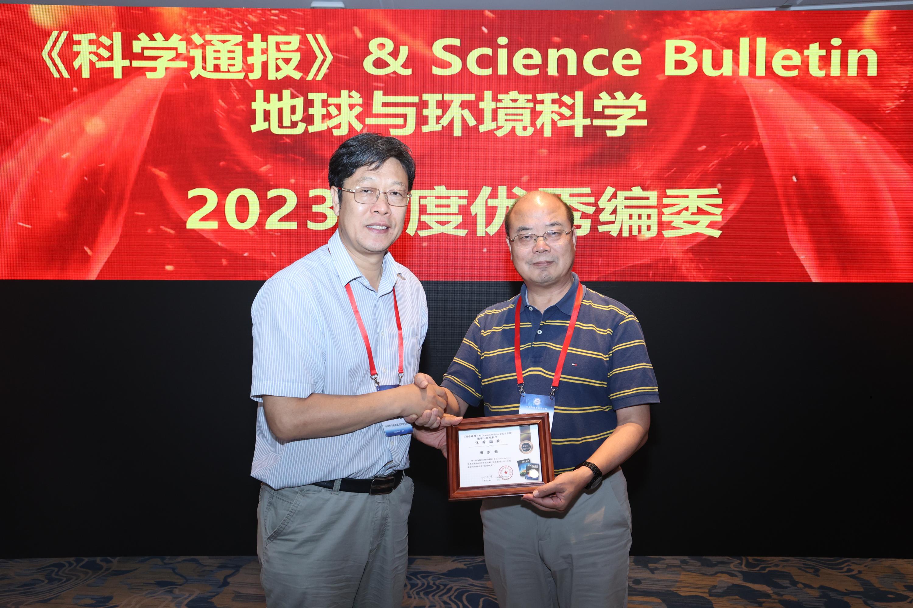 会上,编辑部主任安瑞宣读了2023年度地球与环境科学系列优秀评选名单,陈发虎执行主编为优秀编委代表颁发了荣誉证书。北京大学威海海洋研究院院长、物理学院教授胡永云入选2023年度优秀编委。