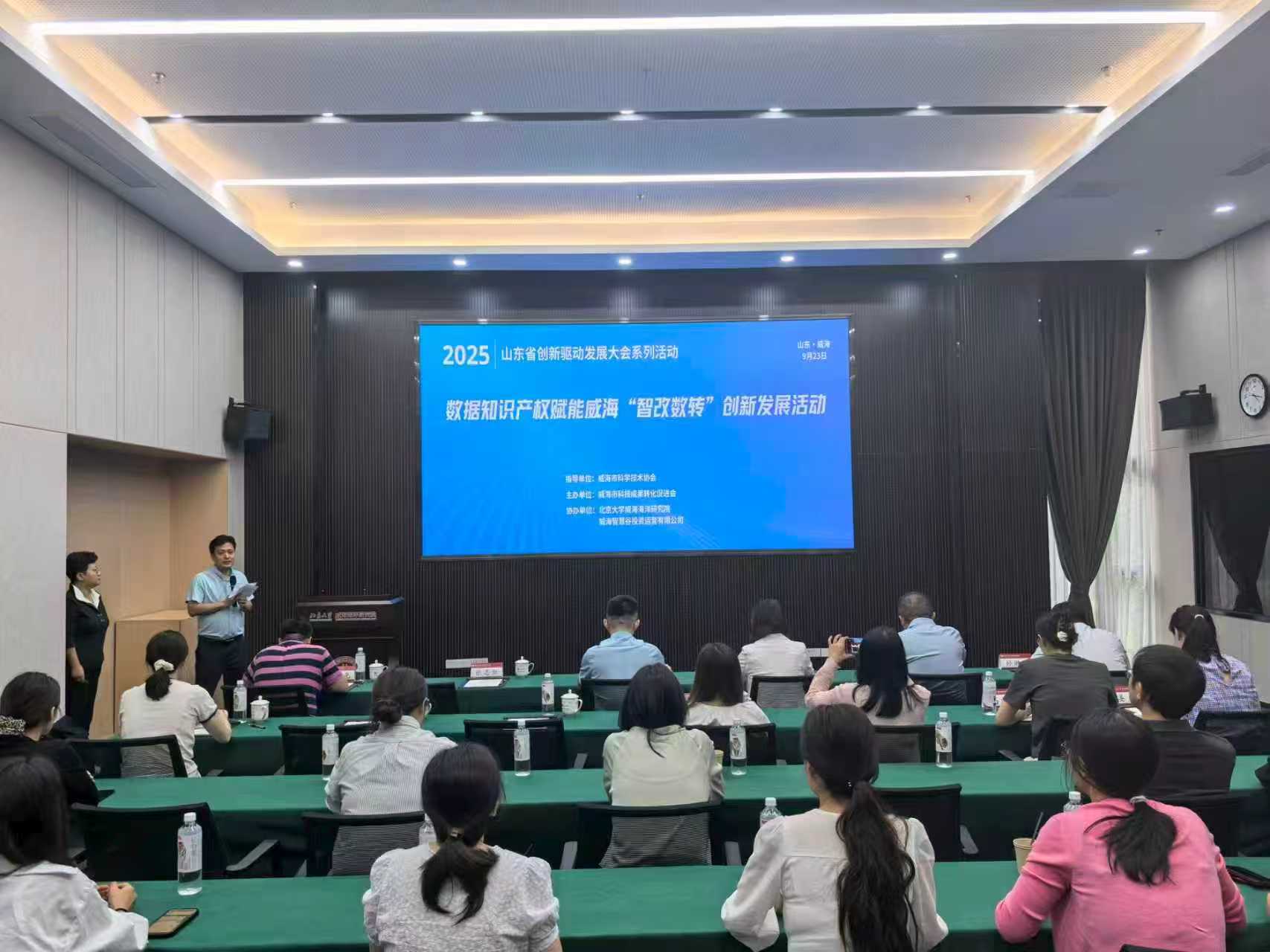 为加快科技创新和产业创新融合,推进数据知识产权保护与运用,持续提升数据要素发展价值,2025年9月23日,由威海市科技成果转化促进会主办,北京大学威海海洋研究院及威海智慧谷投资运营有限公司共同协办的“数据知识产权赋能威海‘智改数转’创新发展活动”在研究院黄海厅成功举办。