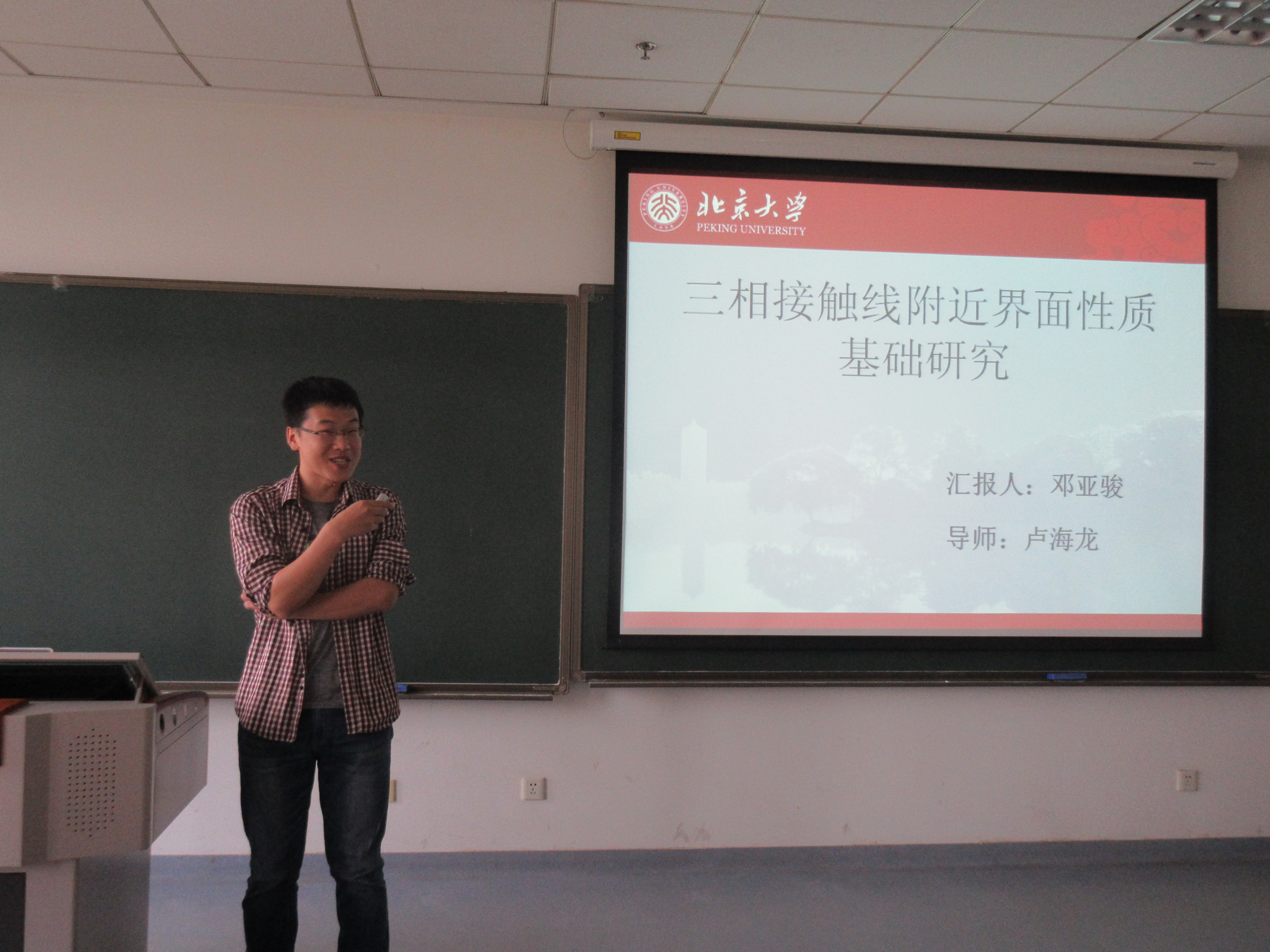 卢海龙教授指导的博士生邓亚骏报告《三相接触线附近界面性质基础研究》