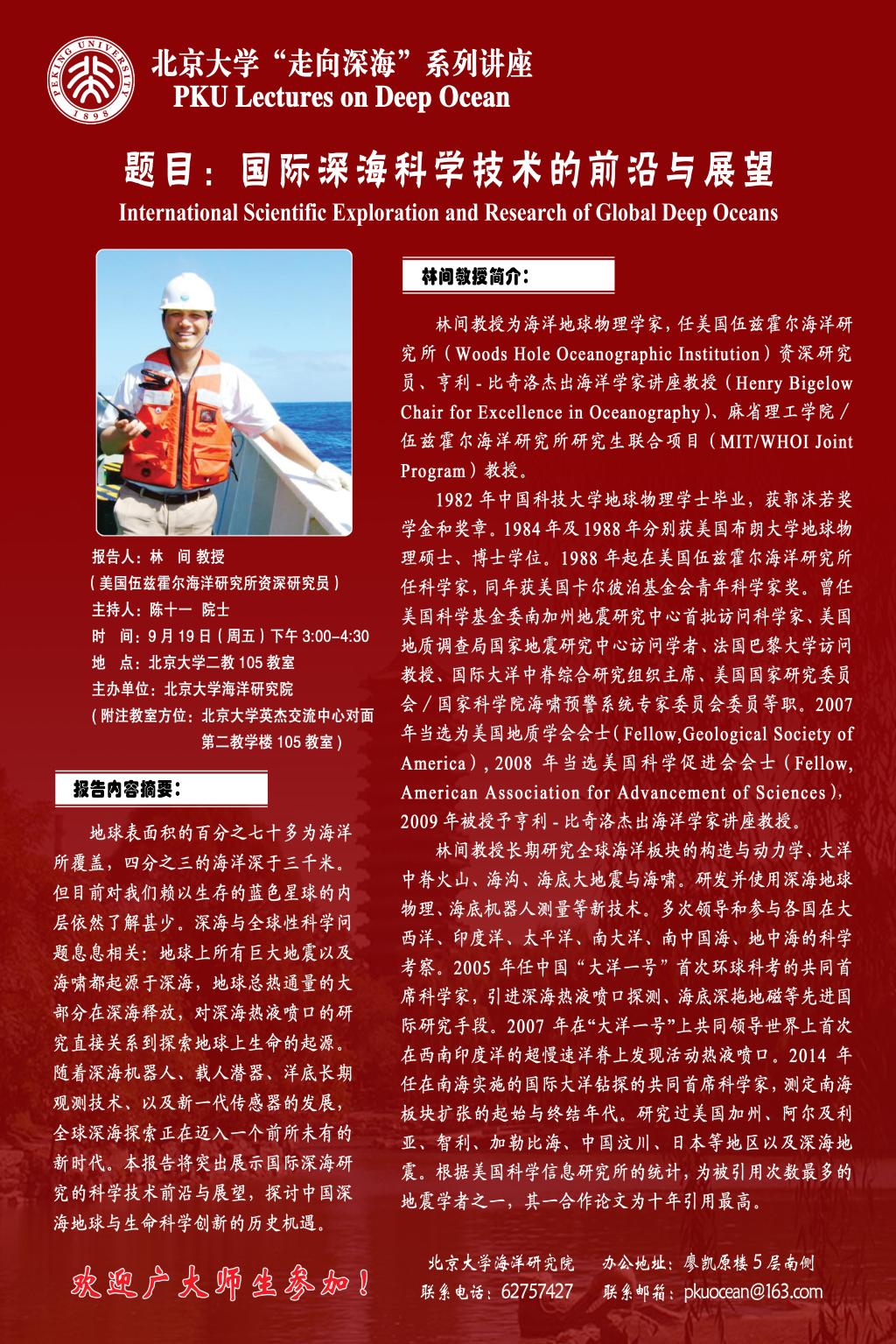 报告人:林  间   教授 (美国伍兹霍尔海洋研究所资深研究员)